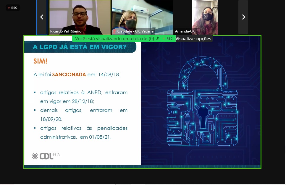 Os colaboradores da CIC Vacaria participaram nesta terça-feira,17/08, de um treinamento referente a Lei Geral de Proteção de Dados Pessoais (LGPD), organizado pela CDL Porto Alegre. A lei 13.709/2018 já está em vigor e diz respeito à proteção de dados pessoais de pessoa física, inclusive nos meios digitais, tratados por pessoas físicas e jurídicas (de direito público ou privado, com o objetivo de proteger os direitos fundamentais de liberdade e privacidade e o livre desenvolvimento da personalidade da pessoa física.
