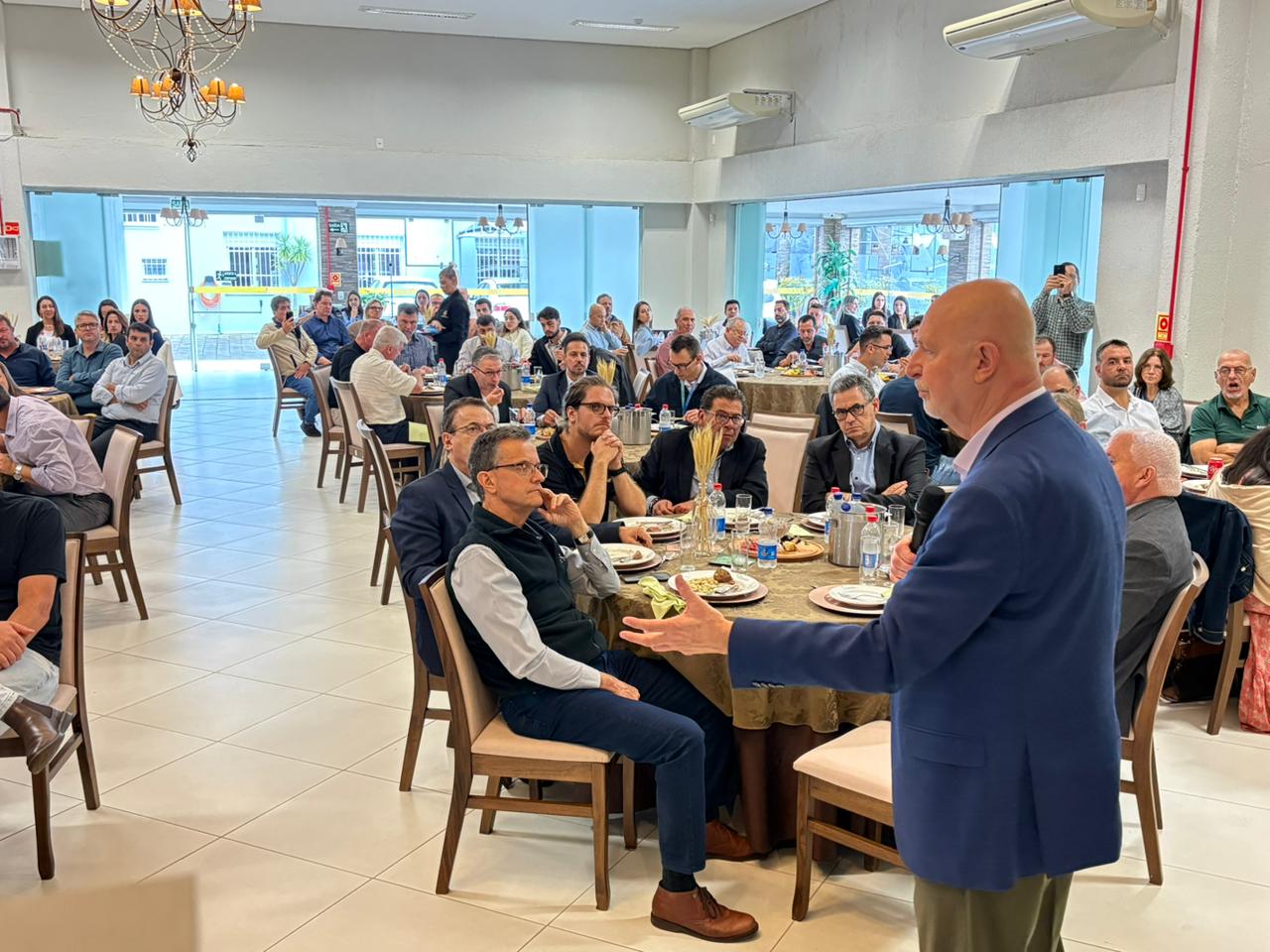 A Câmara de Indústria, Comércio e Serviços de Vacaria (CIC) realizou nesta sexta-feira, 17/04, mais uma edição do “Almoçando com o Empresário”, reunindo lideranças, produtores e empresários da região para debater o cenário do agronegócio. O encontro teve como destaque a palestra de Paulo Herrmann, que abordou o tema “Agro: crise ou oportunidade?”.
