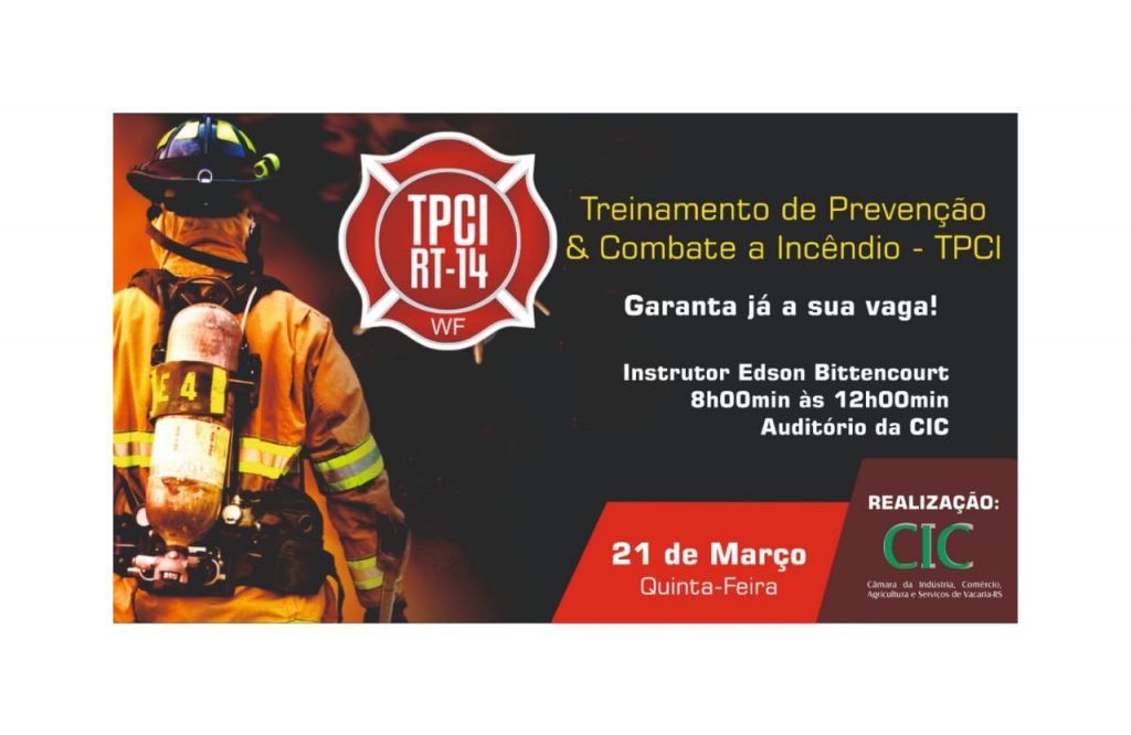 CIC realizará o Treinamento de Prevenção e Combate a Incêndio – TPCI. Garanta já sua vaga! Mais informações no fone (54) 3232-1282.