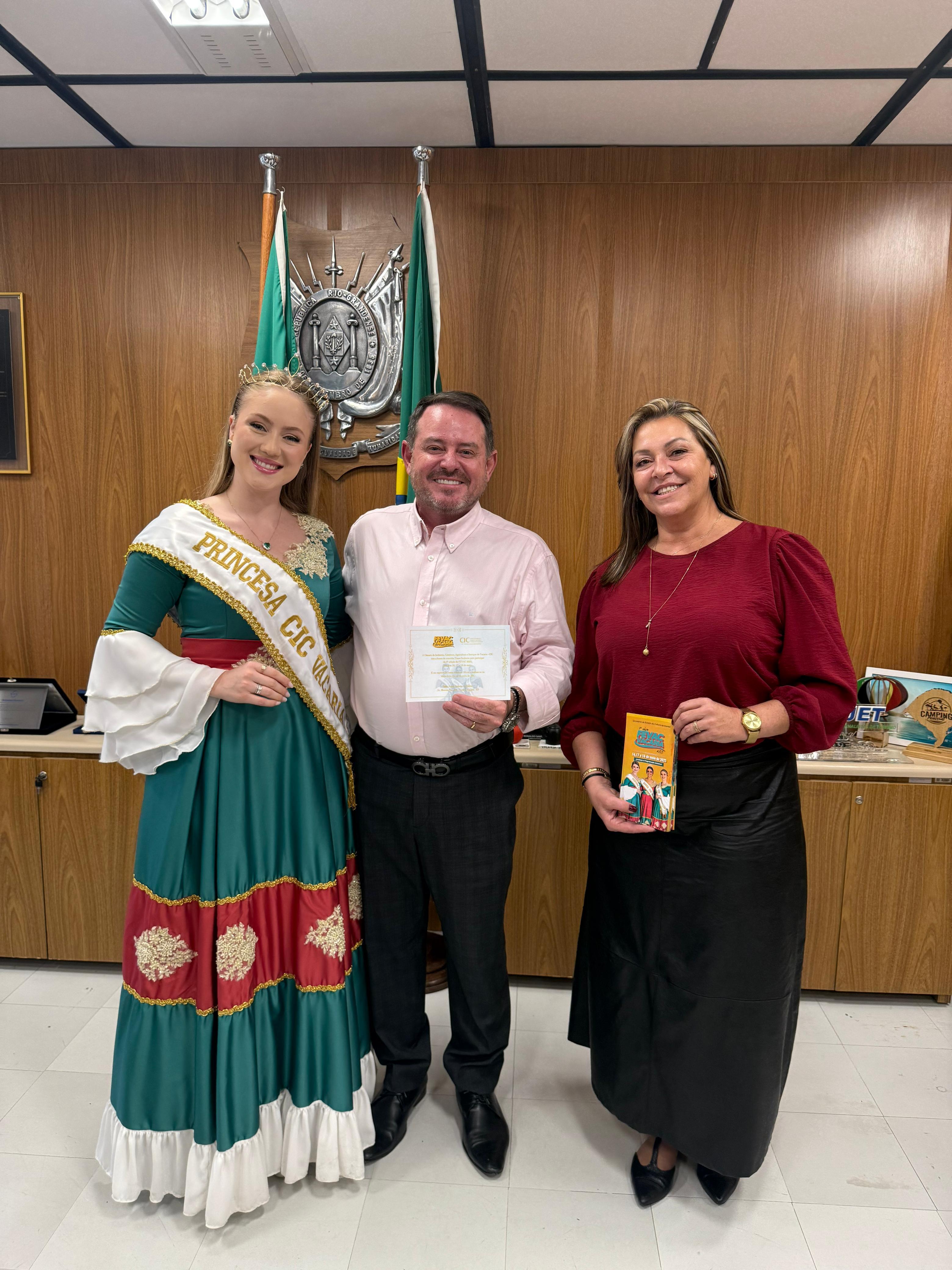 As soberanas da CIC realizaram nos últimos dias uma série de visitas com o objetivo de divulgar a quarta edição da FEVAC. A feira multissetorial de Vacaria será realizada de 16 a 18 de maio no salão Nossa Senhora de Fátima. A rainha Barbara Nunes, as princesas Ana Pawelak e Manoela Bombarda estiveram nos apoiadores, patrocinadores, escolas e órgãos públicos. Na terça-feira, um momento especial foi a solenidade de abertura da exposição historiográfica que mostra uma linha do tempo dos 90 anos do hospital Nossa Senhora da Oliveira. As soberanas prestigiaram o ato na Casa do Povo.