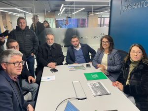 O projeto de implantação de um terminal rodoferroviário em Vacaria e a utilização do Aeroporto Regional como alternativa de voos enquanto o Salgado Filho permanece fechado, foram os temas tratados em um encontro com o vice-governador Gabriel Souza, em Caxias do Sul, nesta segunda-feira,01/07. A presidente da CIC Luciana Vieira de Brito, a vice-presidente da Indústria Marinez Lovatel e o vice-prefeito de Vacaria Marcelo Dondé, estiveram na reunião estratégica do grupo de Trabalho Infraestrutura da Mobilização Regional, realizada a sede da CIC de Caxias. Os dirigentes do MobiCaxias presidente Rodrigo Postiglione , vice Jaime Marchet, diretor-executivo Rogério Rodrigues e o deputado estadual Carlos Burigo também estavam presentes.